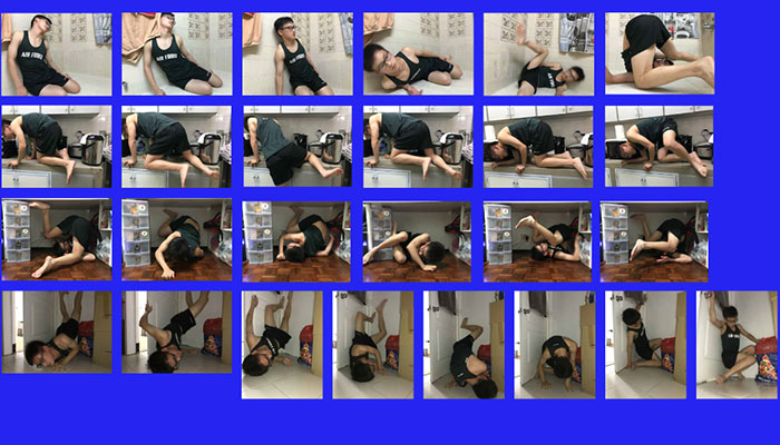 This performance work It’s Awkward is a playful metaphorical representation of human reactions when faced with problems. In particular, it is a reaction drawn from the artist’s experiences of living during discomforting times such as now. Especially when faced with such calamity, it is only human for us to be uncertain, lost and even despair. And within that amalgam of emotions encapsulates various inconsistencies of working out solutions, working out the discomforting situations. Thus, the artist posed as a subject in this performance, struggling in multiple attempts to interact and be comfortable with strange and awkward locations of a home setting. Above all, this project seeks to embrace and understand the act of human nature and all its necessarily weird and awkward gestural acts as it attempts to find a solution.